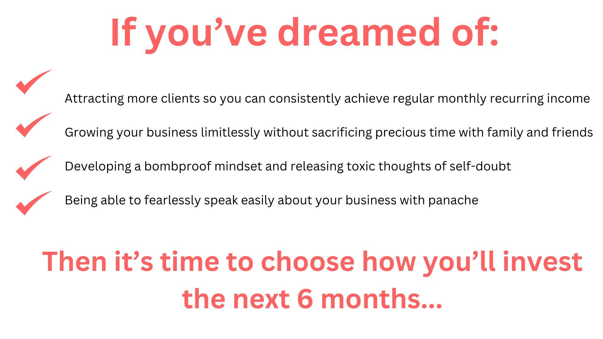 Learn to get out of your own way and scale to regular money months while creating an aligned business with clients you love working with.