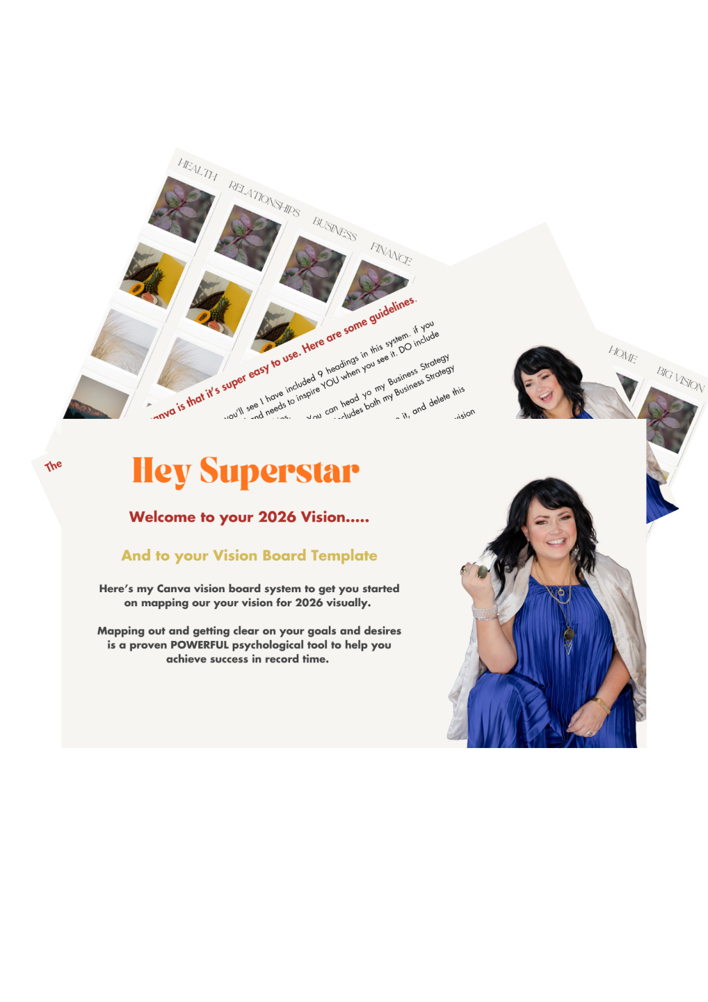 A clean, practical template you can use to visualise what you’re building next and keep your direction front of mind. Simply drop into your own Canva, brand up with your own branding and drag and drop your own images.