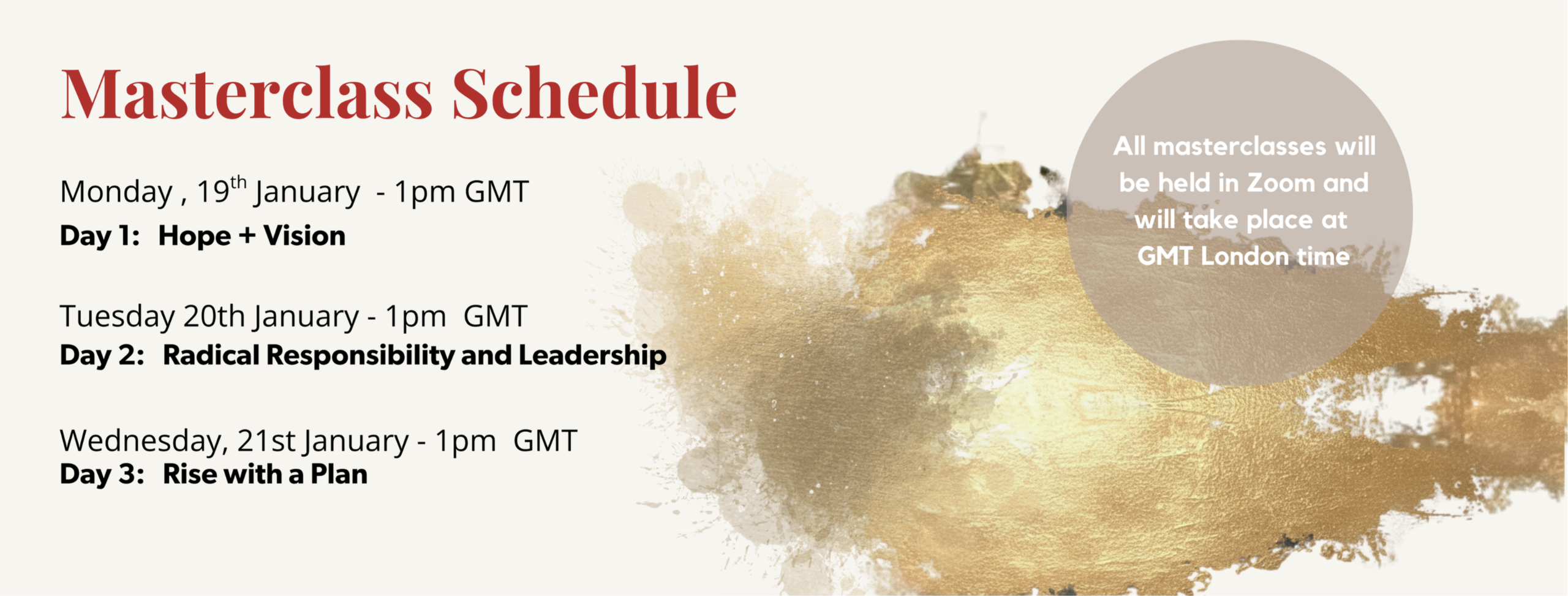 During this Masterclass Series you will: